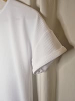 Parce-que vous êtes nombreu(x)ses à aimer la matière gaufrée de notre modèle Aurèle et, en même temps, vous adorez la coupe du t-shirt Alixe, plus cintrée avec cet esprit de manche kimono, légèrement tombante sur les épaules.